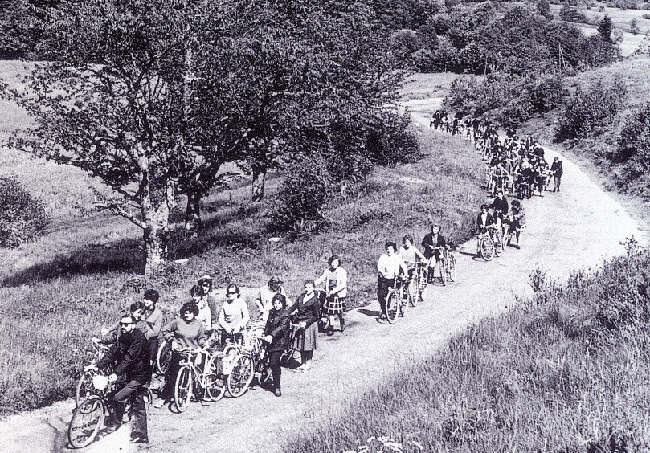 Les jours suivants apportèrent leur part de satisfaction et d'angoisse. Je m'habituai rapidement à ma nouvelle vie qui m'offrait une première émancipation : passer la journée entière loin de ma famille et en-dehors des limites de mon village. Il fallait endurer les trajets à bicyclette, surtout déplaisants lorsque, par temps de pluie, j'étais trempé à l'arrivée à l'école et qu'il fallait des heures pour que le pantalon sèche sur moi. Mais à l'époque c'était le lot commun des déplacements et je devais en prendre mon parti. Fort heureusement, les voyages du matin et du soir étaient aussi l'occasion pour les cyclistes de se regrouper en petits groupes sans considération d'âge ou de village. A l'écoute des anciens, les novices comme moi y glanaient de petits potins de la vie de l'école et parfois aussi de plus grands secrets de l'existence humaine.