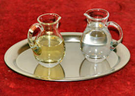 le vin puis l’eau sur les doigts du célébrant. Confiant dans la sûreté