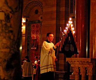 enfin le cierge pascal était allumé au roseau à trois branches et que