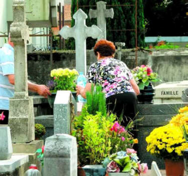 Fleurissement des tombes pour la Toussaint. |