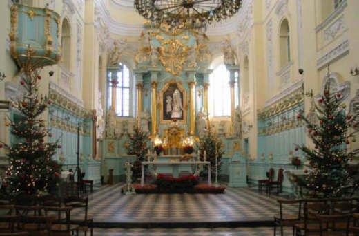 Église décorée pour les offices de Noël.