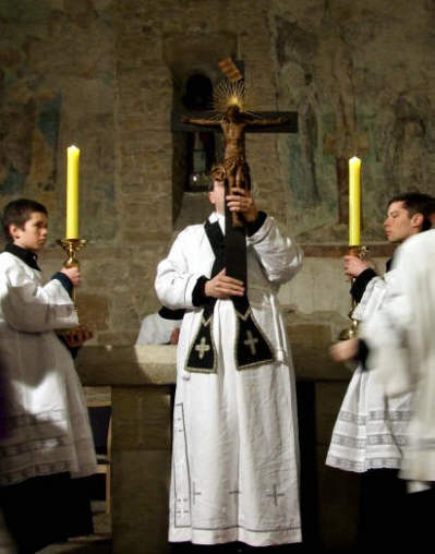 l’inscription INRI, tout en chantant dans un ton grave l’antienne "Ecce