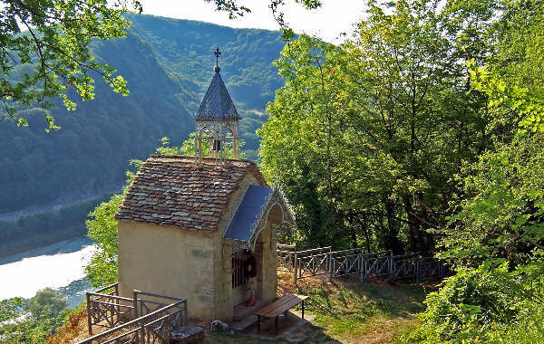 Aujourd'hui, la chapelle est restaurée mais la végétation bouche la vue sur la ville. | |