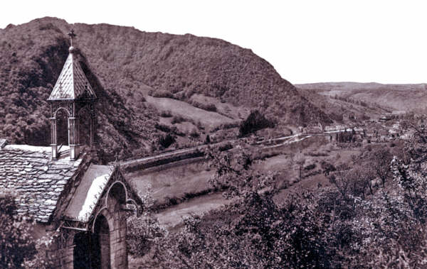 La chapelle du reposoir vers 1935. On y jouissait d'une vue étendue sur Clerval et le Doubs.