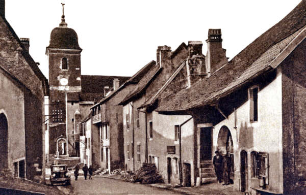 La rue de la Porte de Chaux en amont de l'église, ici dans les années 1930... | |