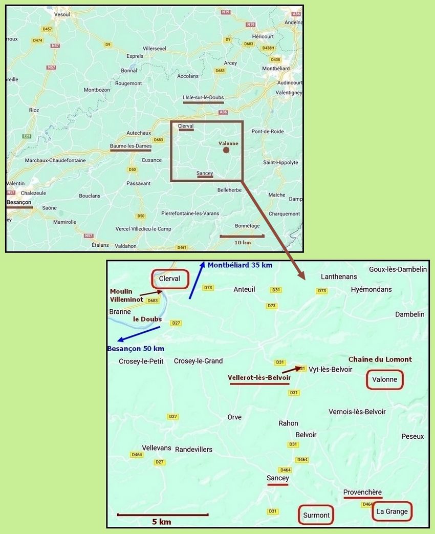 de Valonne et autres lieux cités : voir les cartes plus bas]