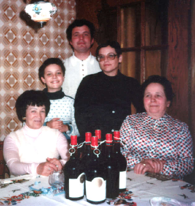 Assises de gauche à droite : Rosette Muñoz épouse Blind et Mathilde Rémond, épouse Jenny. Debout de gauche à droite : Jean-Luc Jenny et ses parents, André Jenny et Josiane Blind, épouse Jenny.