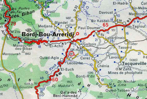 Carte des environs de Bordj Bou Arreridj à l'époque française :