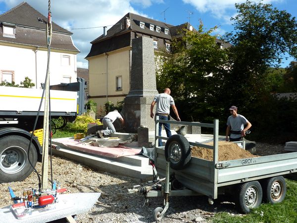 Automne 2014 : l'actuel monument aux morts en cours d'édification par l'entreprise de marbrerie funéraire Girot de Rougemont le Château. |