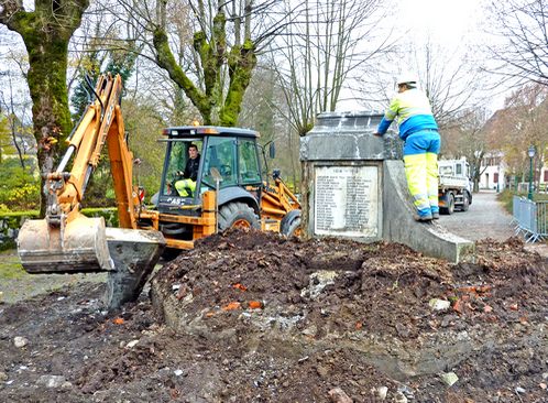 Au début du XXIème siècle, 80 ans après sa construction, le monument donne d'inquiétants signes de vieillissement : les fondations menacent de s'affaisser, le béton s'effrite et se fissure. De plus, en raison des dangers et nuisances de la circulation automobile, sa situation n'est plus favorable au recueillement lors des cérémonies patriotiques. Après plusieurs années d'études et de débats, la construction d'un nouveau monument aux morts est décidée en 2014, année du centenaire de la Première Guerre mondiale. |