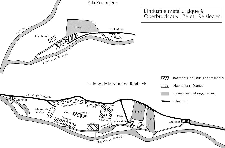 Plan des installations métallurgiques à Oberbruck du XVIIe au milieu du XVIIIe siècle.