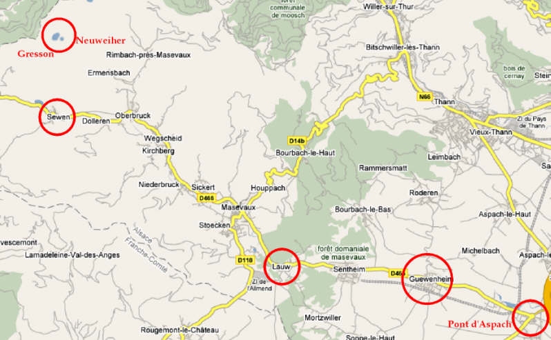 Guewenheim. La voiture passe au Pont d’Aspach à 10 Heures 45 sans être inquiétée